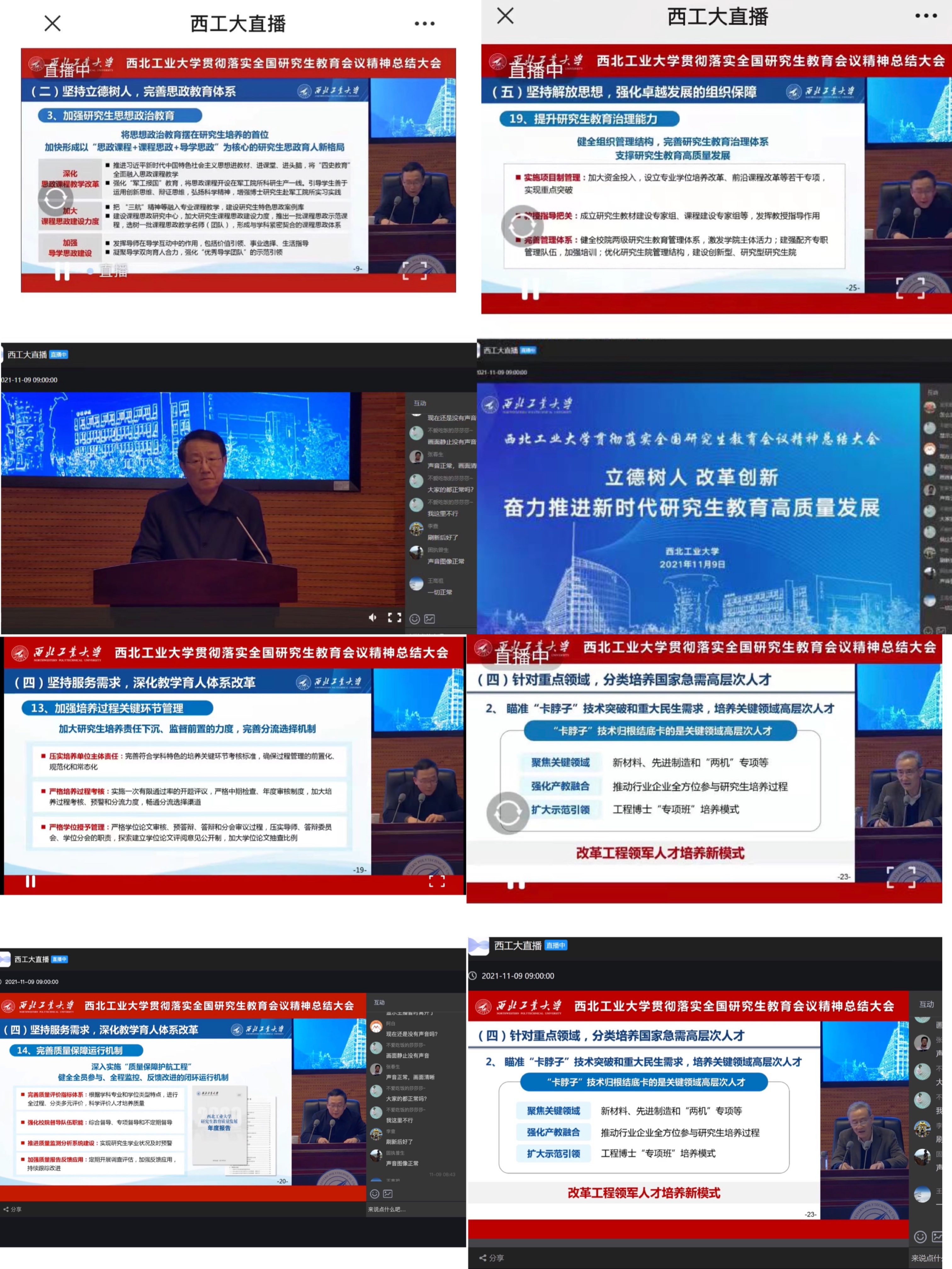 为进一步深入贯彻落实全国研究生教育会议精神、全面深化研究生教育改革、持续提升人才培养质量,11月9日上午,无码视频 党政领导班子成员、研究生导师及研究生代表、办公室相关管理人员等分别在主会场、分会场和在线会场参加了学校“贯彻落实全国研究生教育会议精神总结大会”。