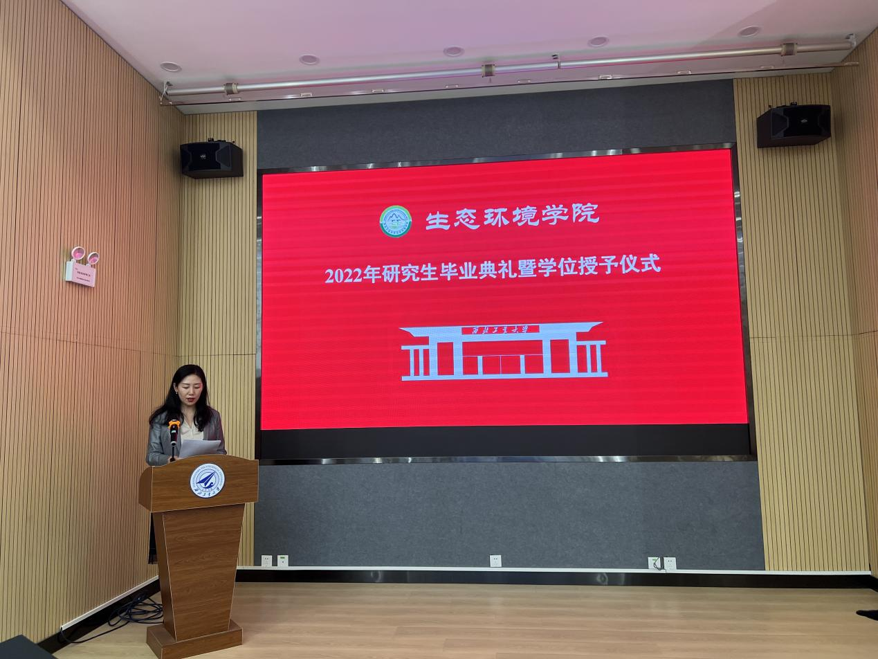 牟蕾宣读了学校《关于表彰2022年研究生“优秀毕业生”的决定》,祝贺我院侯猛、王淋淋、胡欣三位同学获得“优秀毕业生”荣誉称号。他们有的成绩优异,在各类大赛和校园文化活动中斩获颇丰;有的潜心科研,在求学深造的道路上破浪前行,展现了2022届毕业生的风采,发挥了先进典范的榜样力量。