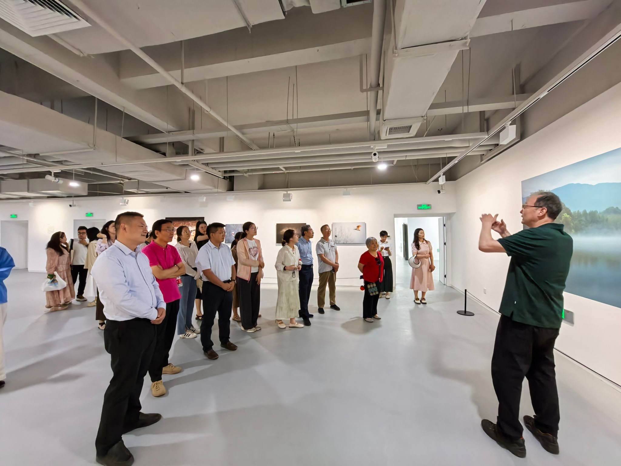 座谈会后,全体人员前往军工素质教育实践中心(博物馆)艺术厅参观“山水之间——朱鹮摄影展”。此次摄影展特别邀请到我校80级原航空发动机系校友王旭先生为大家讲解摄影作品背后的故事。他历时7年,一人一车一镜头,从汉中到铜川,深入朱鹮栖息地,用心记录它们春夏秋冬的美丽瞬间。在参观过程中,他与师生们积极互动交流,分享拍摄过程中的趣事与感悟,进一步加深了大家对朱鹮这一珍稀物种的了解。