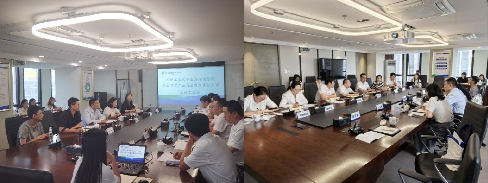 学科建设与人才培养情况,并表示学院坚持服务国家生态文明建设战略,聚焦学科交叉与科技创新,依托高水平师资与科研平台,积极探索校企协同育人新路径,着力培养具有国际视野的高层次生态环保人才。陈帆重点介绍了学院在含铀废水治理、土壤修复、尾气脱硝等领域取得的关键技术成果,相关成果与陕西环保集团项目需求高度契合,具备广阔应用前景。张敏乔表示,此次访企拓岗带领学生直接了解行业需求和就业市场,帮助他们更准确地定位自己的职业目标和发展路径;未来,希望能在技术攻关、人才培养、社会实践基地等方面构建多层次、可持续的校企合作机制。