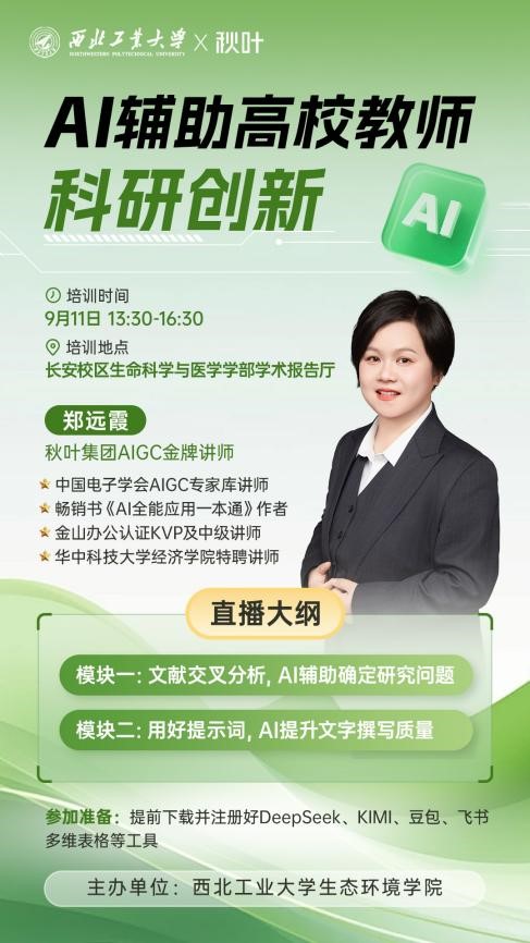 特邀秋叶团队核心讲师郑远霞老师,成功举办“AI辅助高校教师科研创新”专题讲座,吸引了院内教师与科研人员线上线下积极参与。