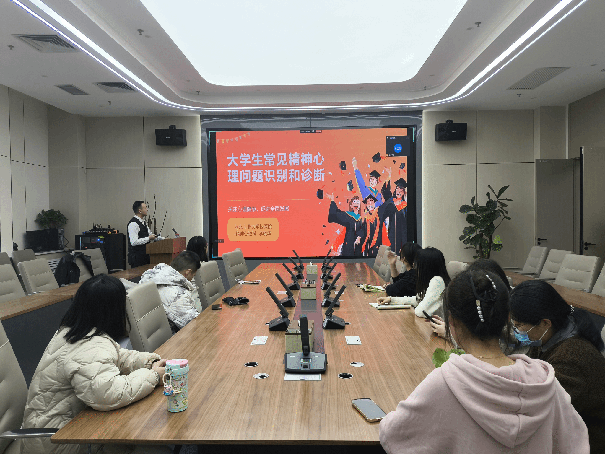 校医院心理科主治医师、心理治疗师李晓华医生,作题为《大学生常见精神心理问题的识别和诊断》的专题报告。讲座由学院研究生教学秘书文苗苗主持,学院部分师生参加了培训。