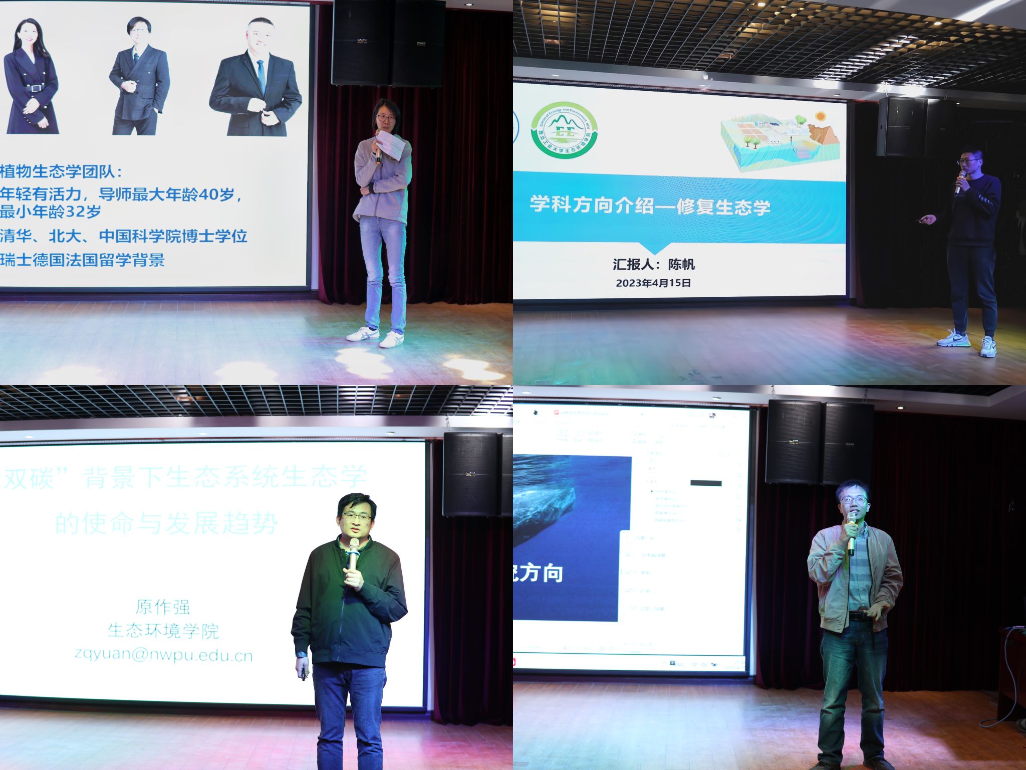 随后齐继艳、陈帆、原作强、王堃四位老师分别向师生们介绍了我院植物生态学、修复生态学、生态系统生态学以及动物生态学相关研究方向、科研成果和未来发展规划等内容,让大家进一步了解了学院各学科方向的发展前景。通过交流互动,进一步增进了师生间的情谊。