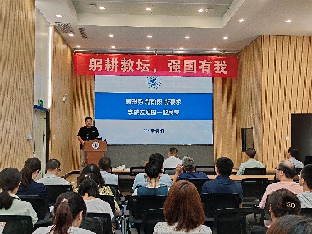召开全体教职工大会暨教师节座谈会议。学院领导班子成员、专任教师、博士后和管理人员参加了会议。会议由党总支副书记(主持工作)段利兵主持。