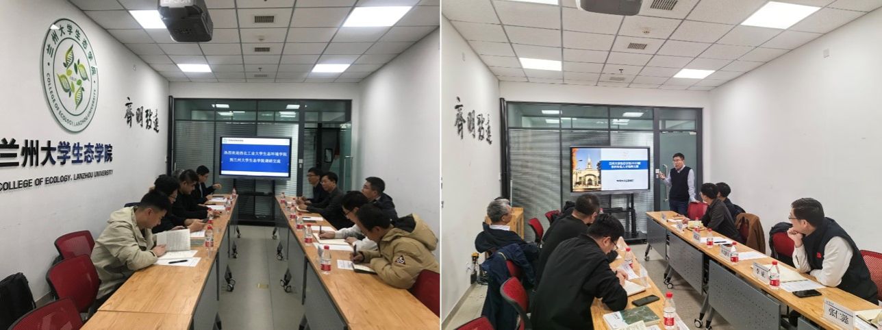 。方向文副院长从学院师资队伍、学科建设、人才培养、平台建设等方面介绍了生态学院基本情况。尚占环副院长介绍了生态学院在教学理念、人才培养方案、本科生导师制等方面的经验和实践。袁建立和张仁懿老师重点就生态学本科生实习方案和生态学虚拟教室建设做了详细讲解。邱强院长在随后的交流中表示,两家学院有独特渊源,兰州大学生态学科历史悠久、声誉斐然,在“双一流”建设中成取得了一系列耀眼的成绩,为祖国培养了大批优秀人才。希望以此次调研为契机,增强兄弟学院之间的沟通交流,学习优势、交流经验,积极主动借鉴生态学院好的经验做法,联合进行本科生实习,共同开展有组织的科研。
