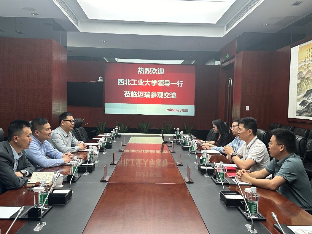4月12日上午,生命科学与医学学部党委书记段利兵,学部党委副书记万海东、于兆良,生命学院办公室主任曹懿一行走访了深圳迈瑞生物医疗电子股份有限公司(以下简称“迈瑞”),与迈瑞生命信息与支持事业部副总经理左鹏飞、医学影像事业部医学影像硬件与工程开发部机械经理赵彦群(西工大校友)、招聘经理刘伟、校企关系负责人谭雁尹交流座谈。