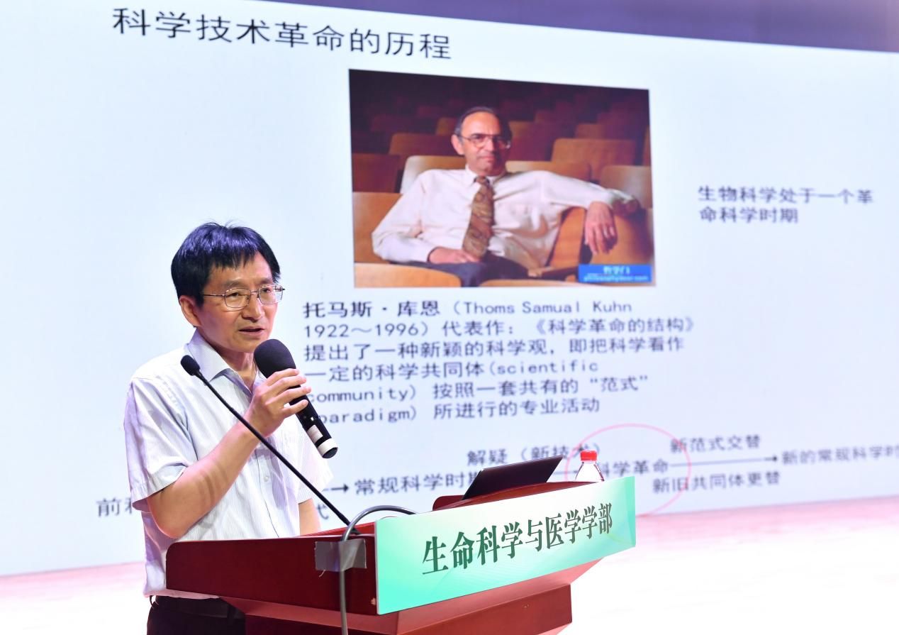 生命科学与医学学部党委书记段利兵在开幕式上致辞并主持大会主题报告,他表示学部将按照“聚合力、优平台、强学科、育英才”的总体工作思路,积极为全体师生创造交流合作机会、营造浓厚学术氛围,共同推动学部高质量内涵式发展。