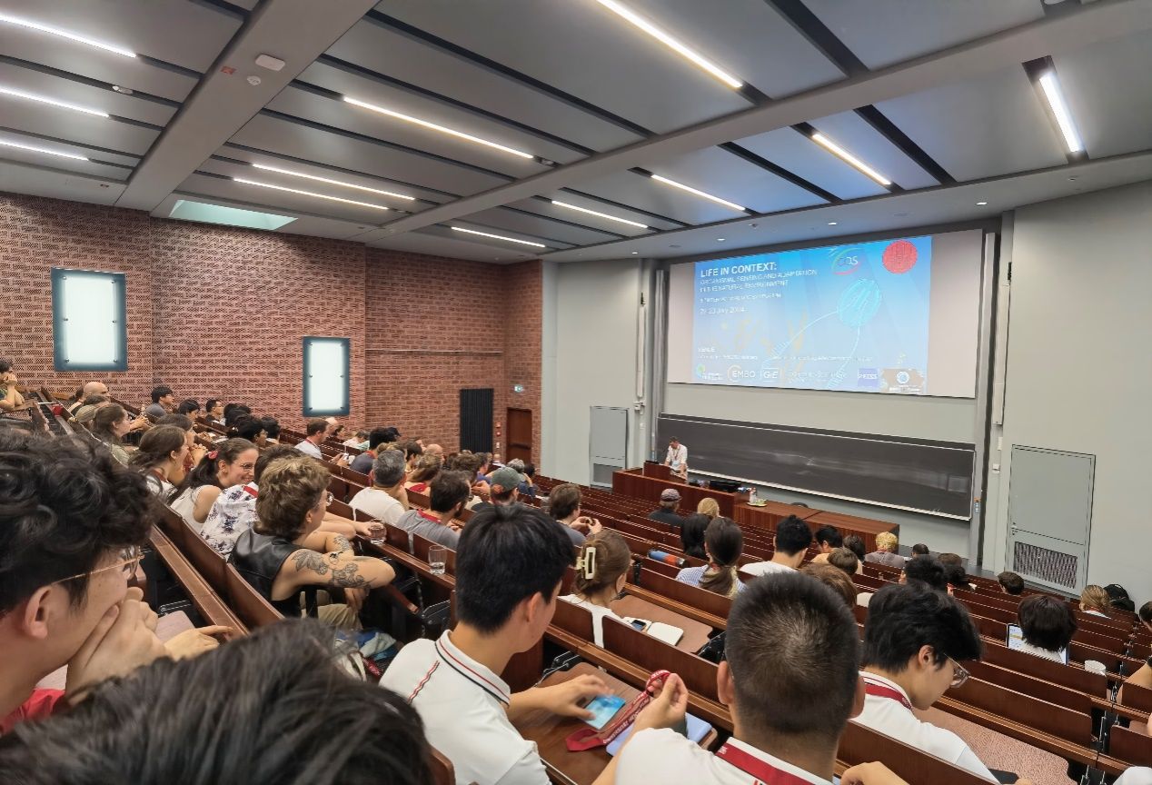 此次暑期活动适逢两年一期的COS(海德堡大学有机体研究中心)学术研讨会,本期主题为“生命在环境中——有机体在自然环境中的感知与适应”,会议汇集了来自英国牛津大学、德国图宾根大学、欧洲分子生物学中心、日本基础生物学研究所、美国博伊斯·汤普森研究所等顶尖学术机构的著名专家学者,他们分享了关于真核细胞复杂性起源、植物与病毒相互作用、肉食植物特征演化、寄生菌与海洋生物的共生关系、海洋生物运动方式、浮游生物共生体系检测、果蝇转座子与城市化适应等前沿研究成果;特别是压轴的EMBO讲座中,孟德尔研究所的Liam Dolan教授关于“早期陆地植物进化”的精彩演讲,为学生们打开了探索地球生命早期演化的新视角。在这两天的学术盛宴中,学生们遨游在生命与环境领域的知识海洋中,体验着前沿研究领域新观点、新思想的碰撞、建立和突破,也目睹了德国宽松友好的学术环境对于青年学者的鼓励和支持,在中场休息和海报展出环节,学生们更是大胆地和国外学者们充分进行英文沟通交流,达到了锻炼学生科学思维,积极参与国际科学活动的目的。