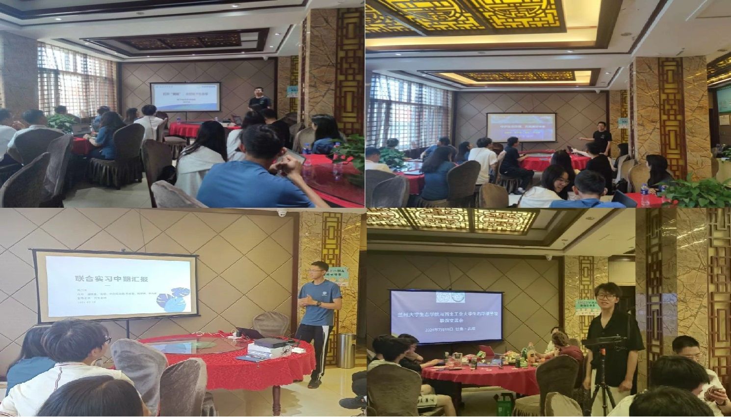 的基本情况、学科优势和未来发展计划。兰州大学张仁懿老师利用兰州大学生态学院虚拟教室的虚拟现实网站演示了石羊河流域植被类型空间分布特征,艾得协措老师介绍了基于NetLogo制作可视化、可交互的生态学虚拟仿真软件的使用方法及其在实践研究中的意义。之后,各实习小组从工作内容、数据分析、研究结果、存在问题及总结反思等方面进行了总结汇报,各小组带队老师进行了全面点评,提出了指导建议。汇报结束后,两校同学们组织了联谊交流会,互相交流实习心得,开展趣味游戏。七天时间虽短,经过实习,同学们之间结下了深厚友谊!