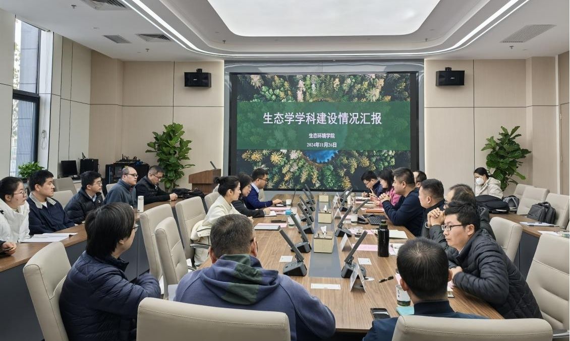 邱强从学科现状、与目标高校核心数据对比及下一步发展举措等方面对生态学学科建设情况作了详细汇报。与会人员围绕学科发展现状、短板及下一步举措展开了研讨。