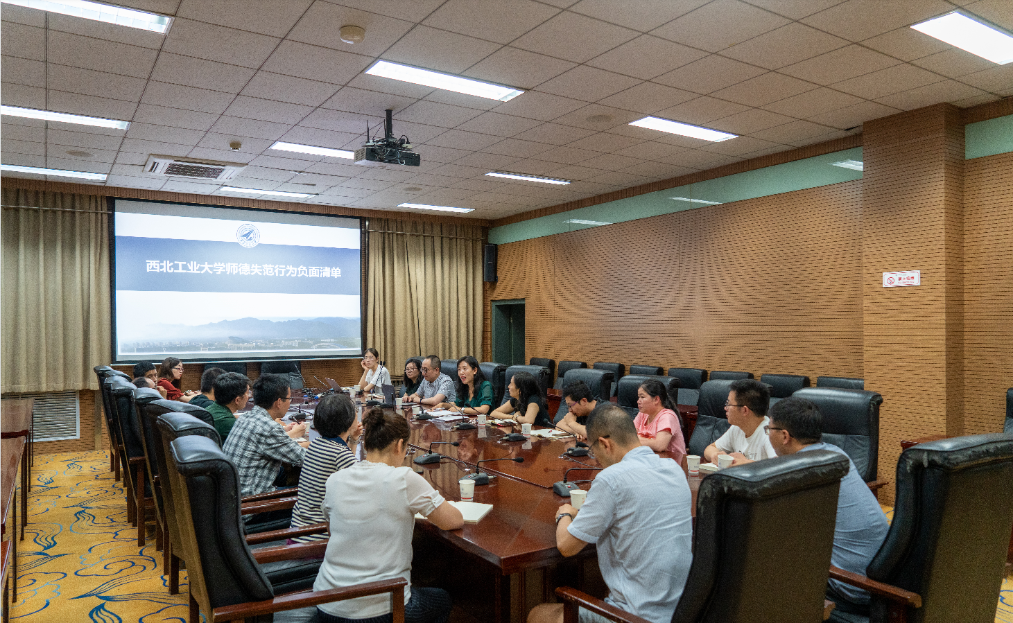 其次,牟蕾结合违反高校教师职业行为十项准则的典型案例,对学院教职工开展师德警示教育,多次强调师德失范在考核、评聘、推优等过程中的“一票否决”,要求学院教师从警示案例中汲取教训、引以为戒、警钟长鸣。