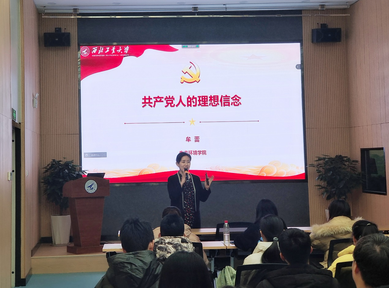 党总支书记牟蕾在学院报告厅为青年师生讲授《共产党人的理想信念》专题党课。