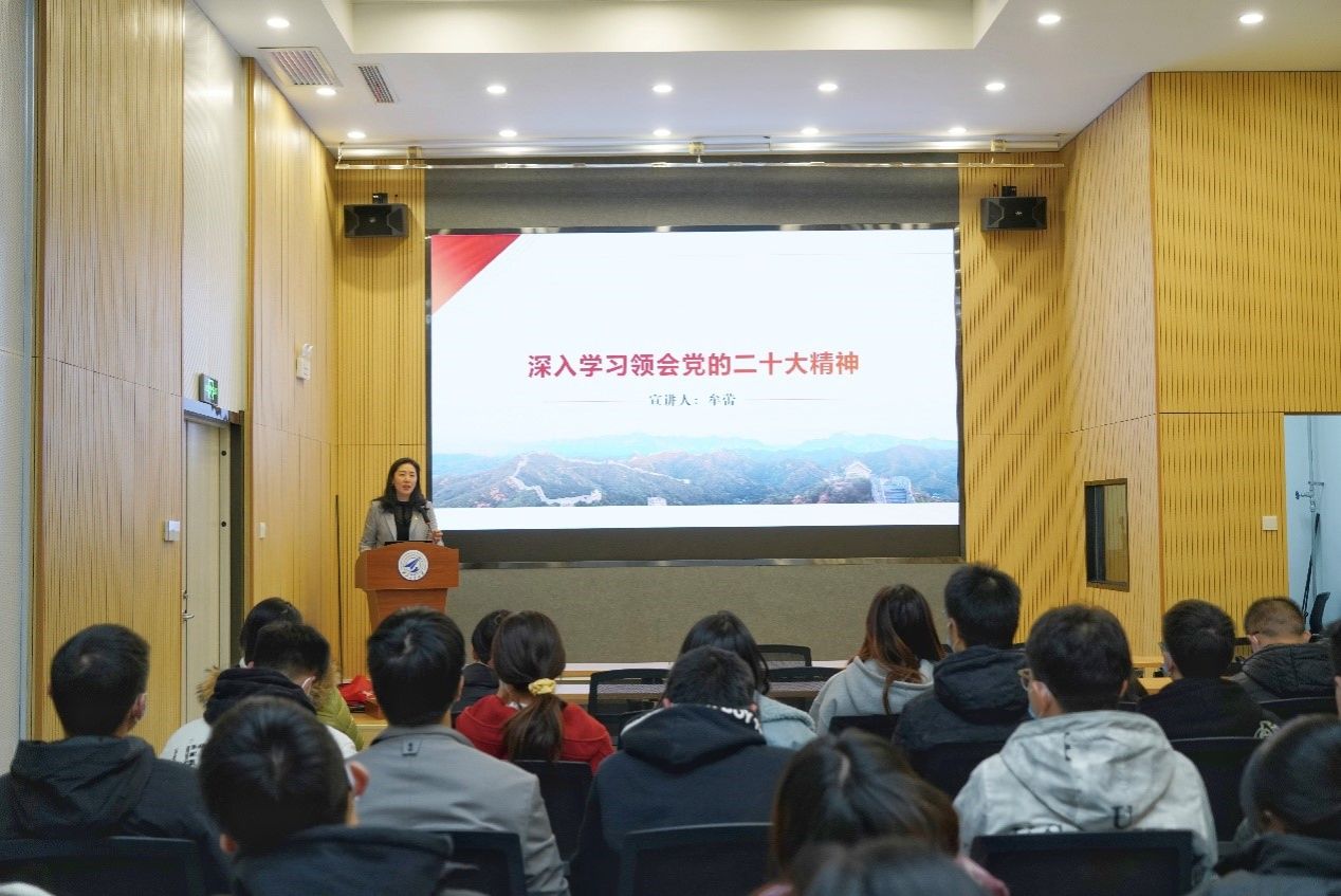 党总支书记、副院长牟蕾面向全体师生党支部书记、支部委员、积极分子、发展对象和办公室管理人员,开展了“深入学习领会党的二十大精神”的专题宣讲。