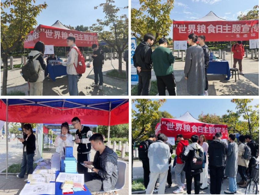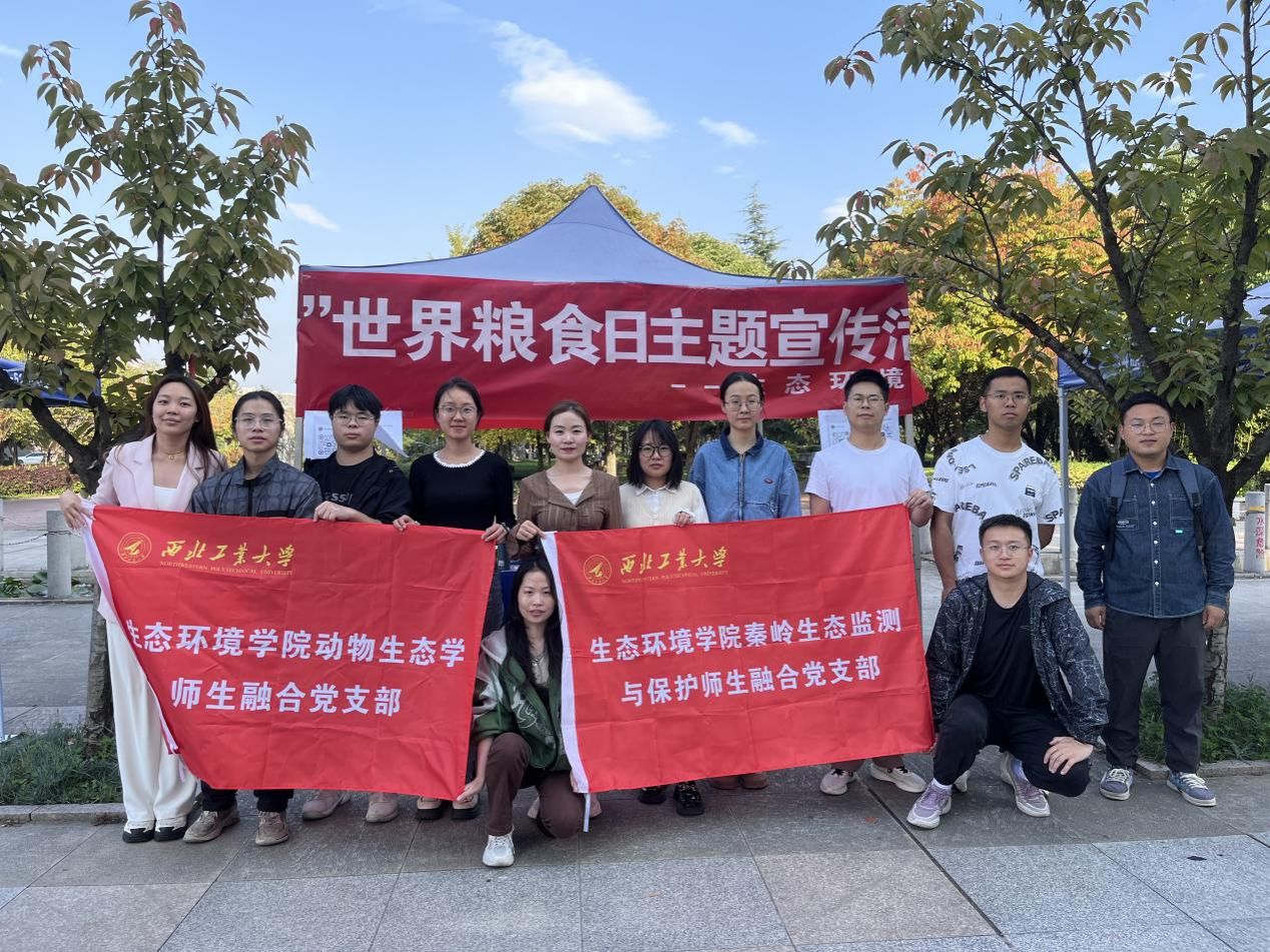 秦岭生态监测与保护师生融合党支部联合动物生态学师生融合党支部、低年级本科生党支部在数字化大楼广场开展了“践行大食物观,保障粮食安全”世界粮食日主题宣传活动。