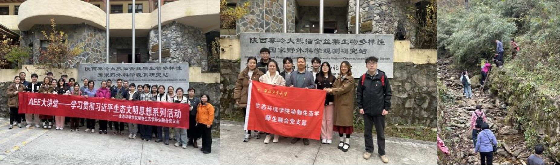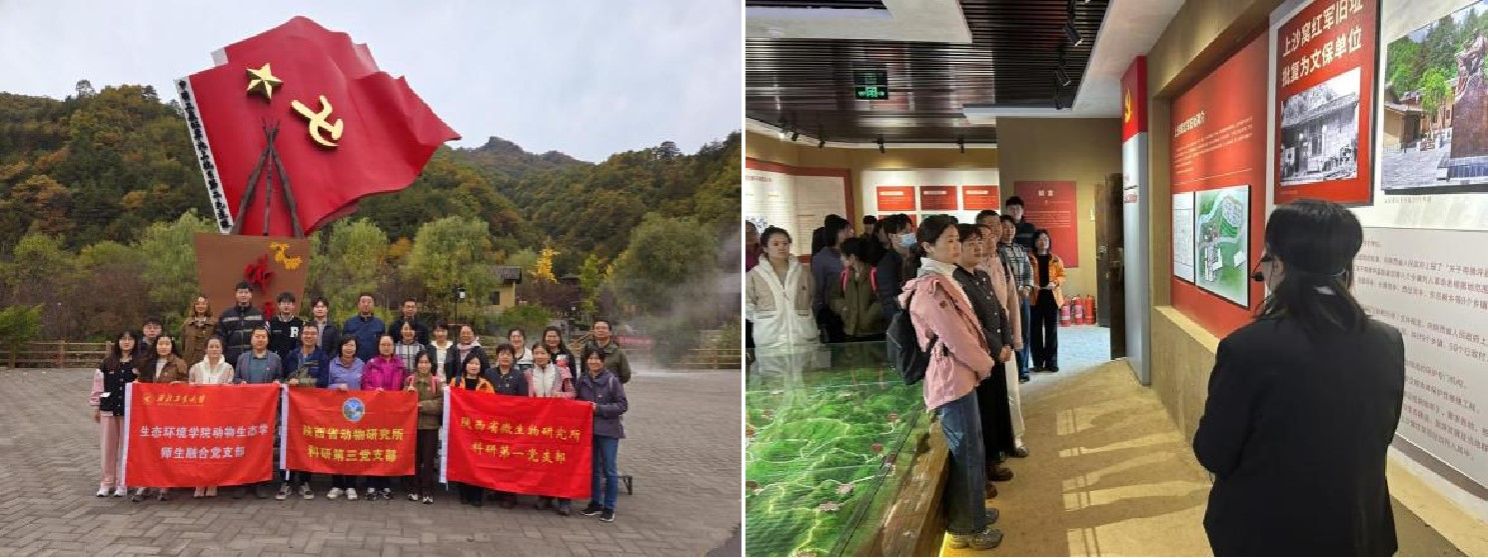 动物生态学师生融合党支部与陕西省动物研究所科研第三党支部和陕西省微生物研究所科研第一党支部,共同前往秦岭大熊猫佛坪救护繁育研究基地、上沙窝村红二十五军旧址、陕西省科学院(佛坪)金丝猴科学研究野外基地,开展意义深远的主题党日活动。