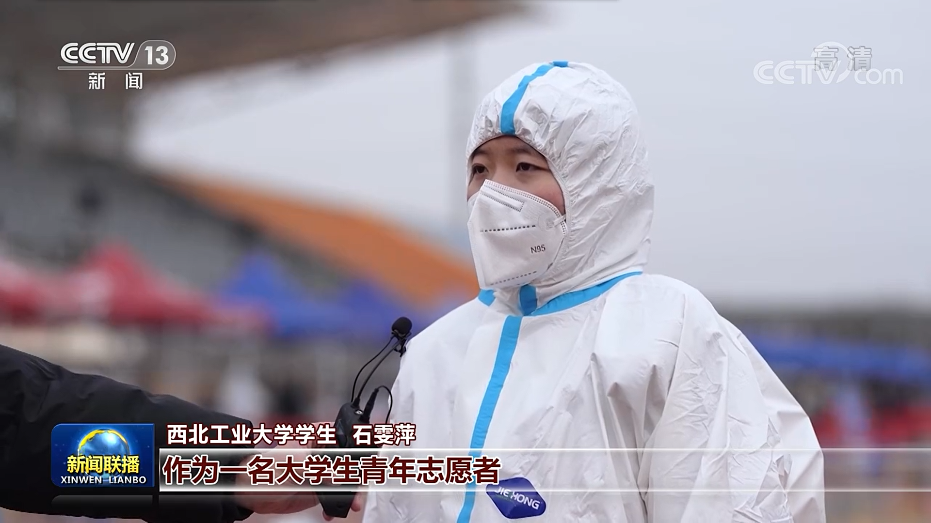 2021年12月31日,中央电视台《新闻联播》采访报道了西工大学生志愿者石雯萍。报道提到,2021年,面对全球新冠肺炎疫情的肆虐,中国青年不畏艰险,冲锋在前。眼下西安实施严格的疫情管控,高校学子一张又一张请战书,再次见证了中国青年的勇毅担当。石雯萍在采访中说:“作为一名大学生青年志愿者,我应该在祖国需要我们青年一代人的时候,坚定的站出来,然后去为社会做出自己的贡献,实现自己的价值。”