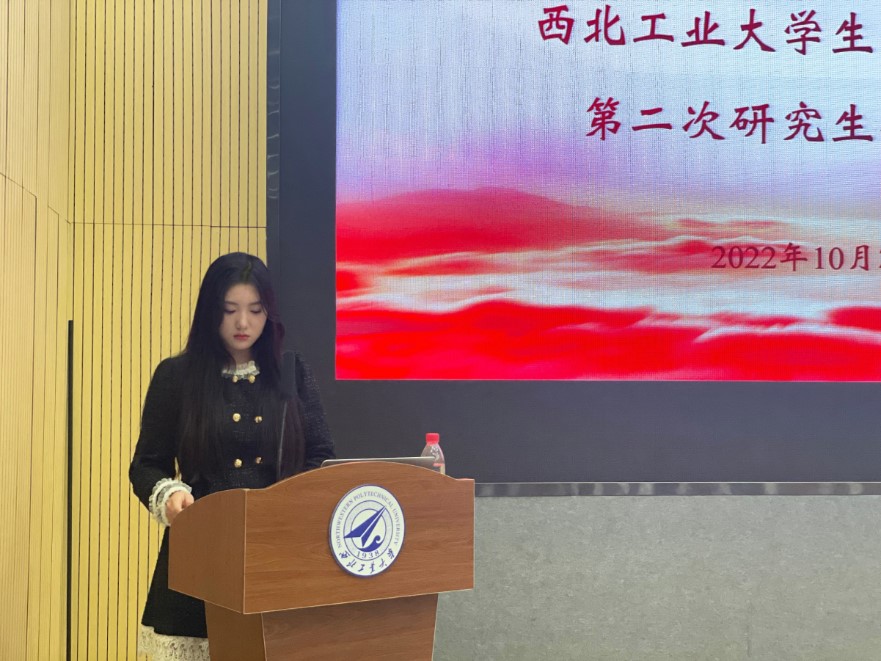 李甜甜同学作了我院第一届研究生会工作报告,回顾了一年来在思政引领、活动策划等学生工作中所取得的成绩。
