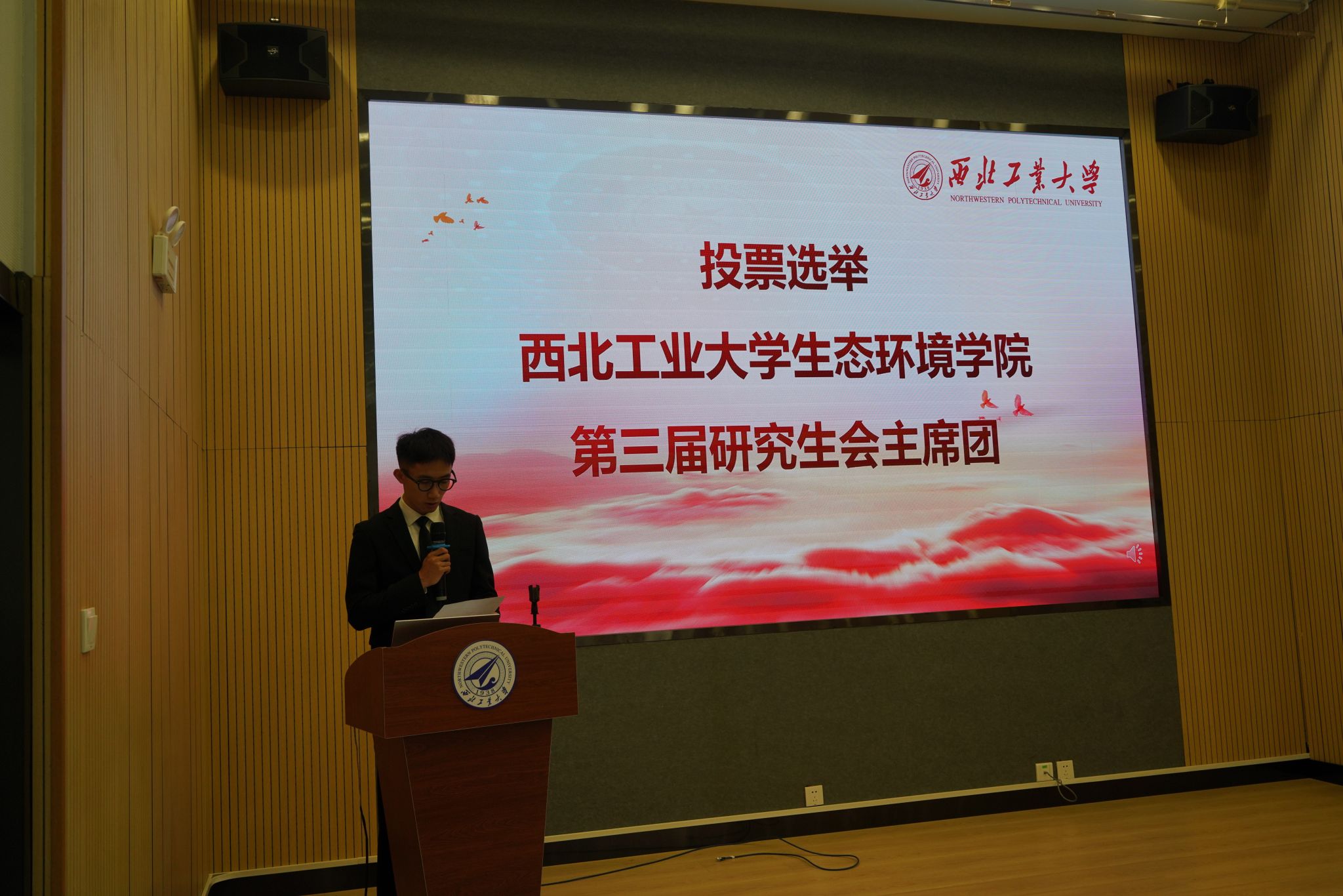 第二届研究生会执行主席郭霖从组织架构、思想引领、特色活动等方面汇报了院研究生会过去一年所做的主要工作。