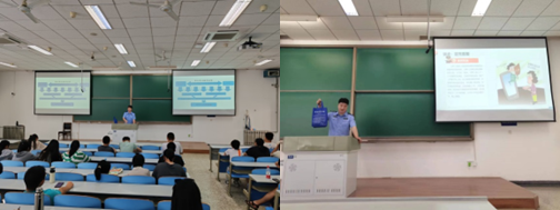 联合校保卫处、外国语学院、柔性电子研究院特邀西安市公安局高新分局反诈专干杨皓宇警官为同学们进行反电信网络诈骗安全教育讲座。我院全体本科生及研一学生参加本次讲座。