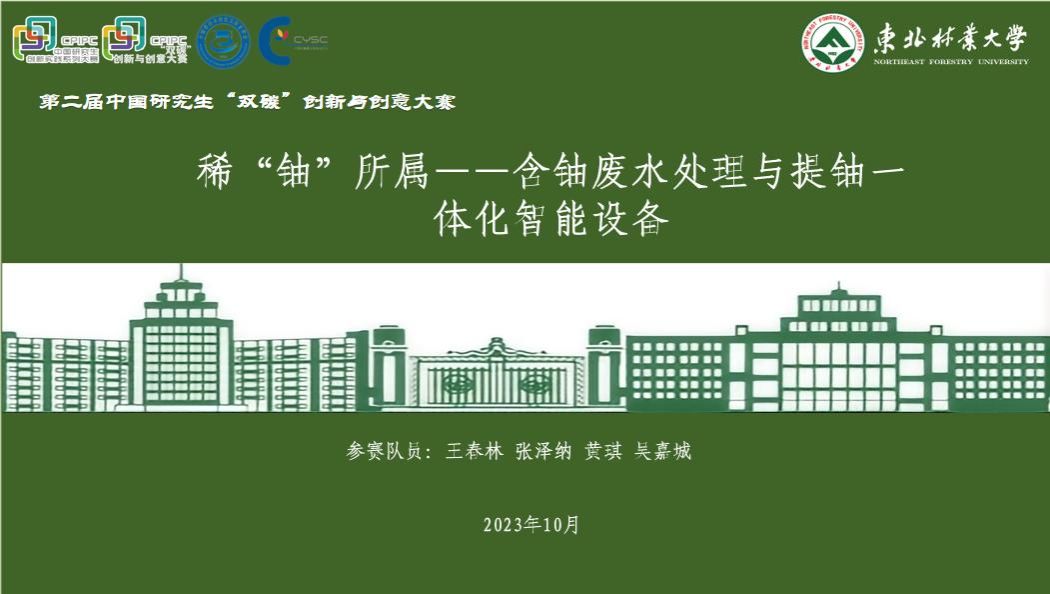 2023年10月29日,第二届中国研究生“双碳”创新与创意大赛圆满落幕。本次大赛以“创意启迪智慧、创新驱动发展”为理念,以“智慧双碳,创享未来”为主题,涵盖了环境与新能源技术、新材料技术、电子信息技术、未来人居设计、生态农业技术等前沿技术。经过初赛与复赛的激烈角逐,我院王宇恒教授和陈帆副教授联合指导的项目“稀铀所属——含铀废水处理与提铀一体化智能设备”,从全国293家研究生培养单位的2082件作品中脱颖而出,最终斩获全国三等奖。